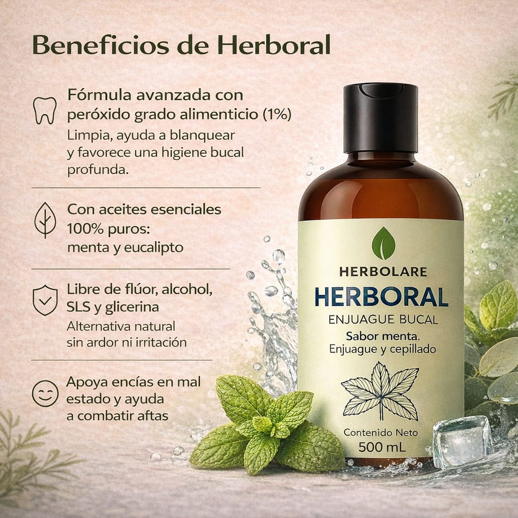 23 años de experiencia Herbolare en productos botánicos – Desde 2003, Herbolare ha desarrollado alternativas naturales para el cuidado familiar inspiradas en herbolaria tradicional. Fórmula artesanal mexicana con peróxido grado alimenticio e ingredientes puros, ideal para rutinas de higiene bucal consciente.