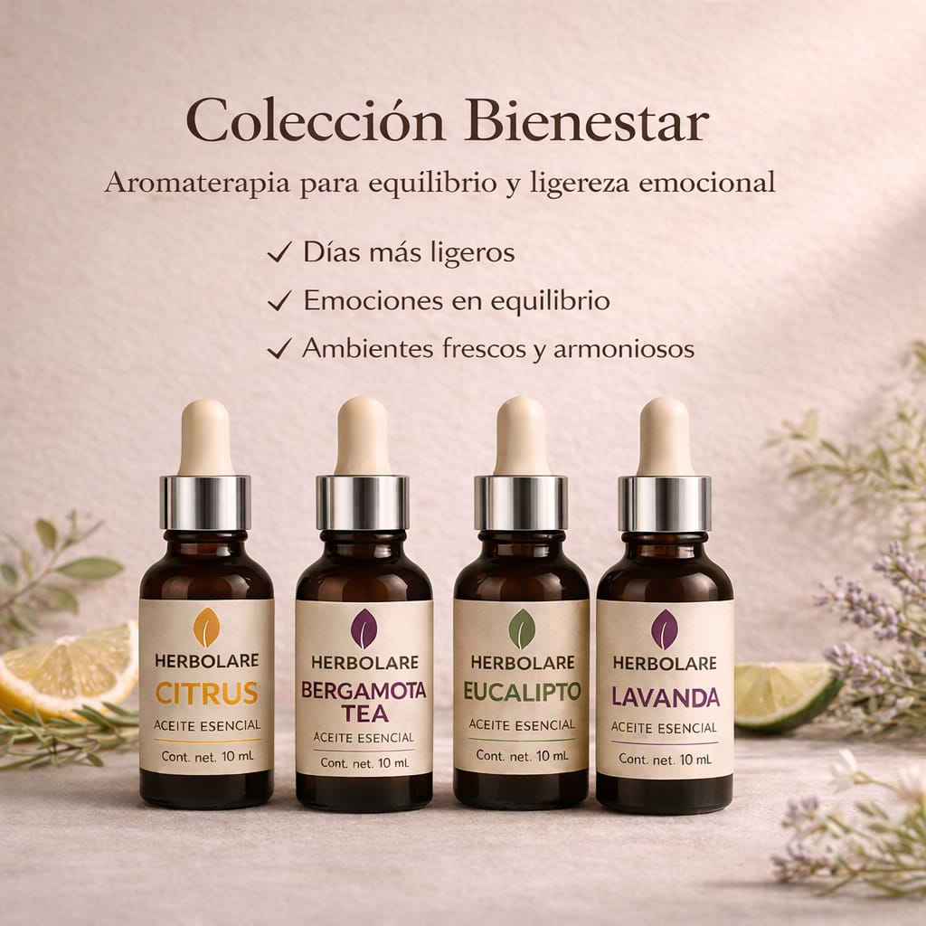 Herbolare Colección Bienestar – Aromaterapia para Equilibrio y Ligereza Emocional | Eucalipto, Lavanda, Citrus y Bergamota Tea | 10 ml