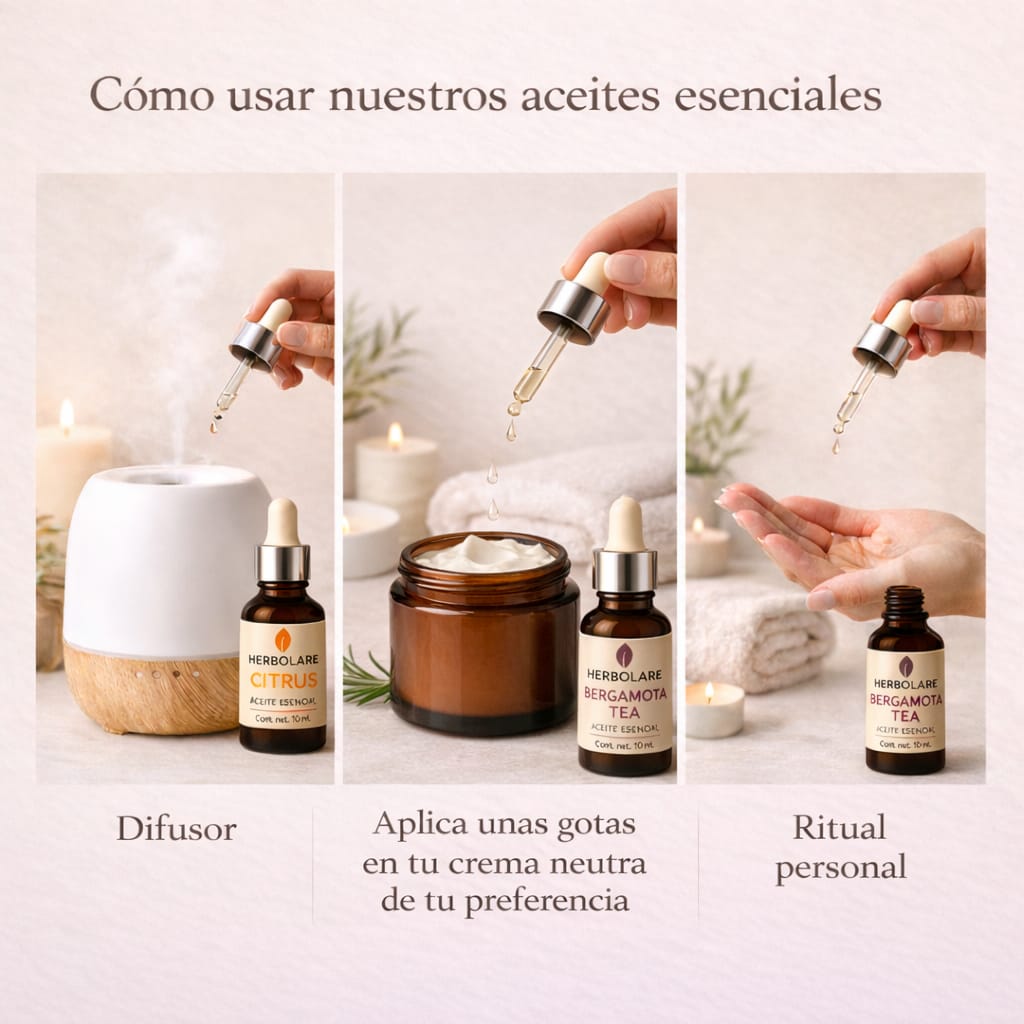 Pueden utilizarse individualmente o combinados en difusor, diluidos en aceite vegetal para masaje o integrados a rituales aromáticos diarios. La colección está pensada para un uso flexible y sencillo.