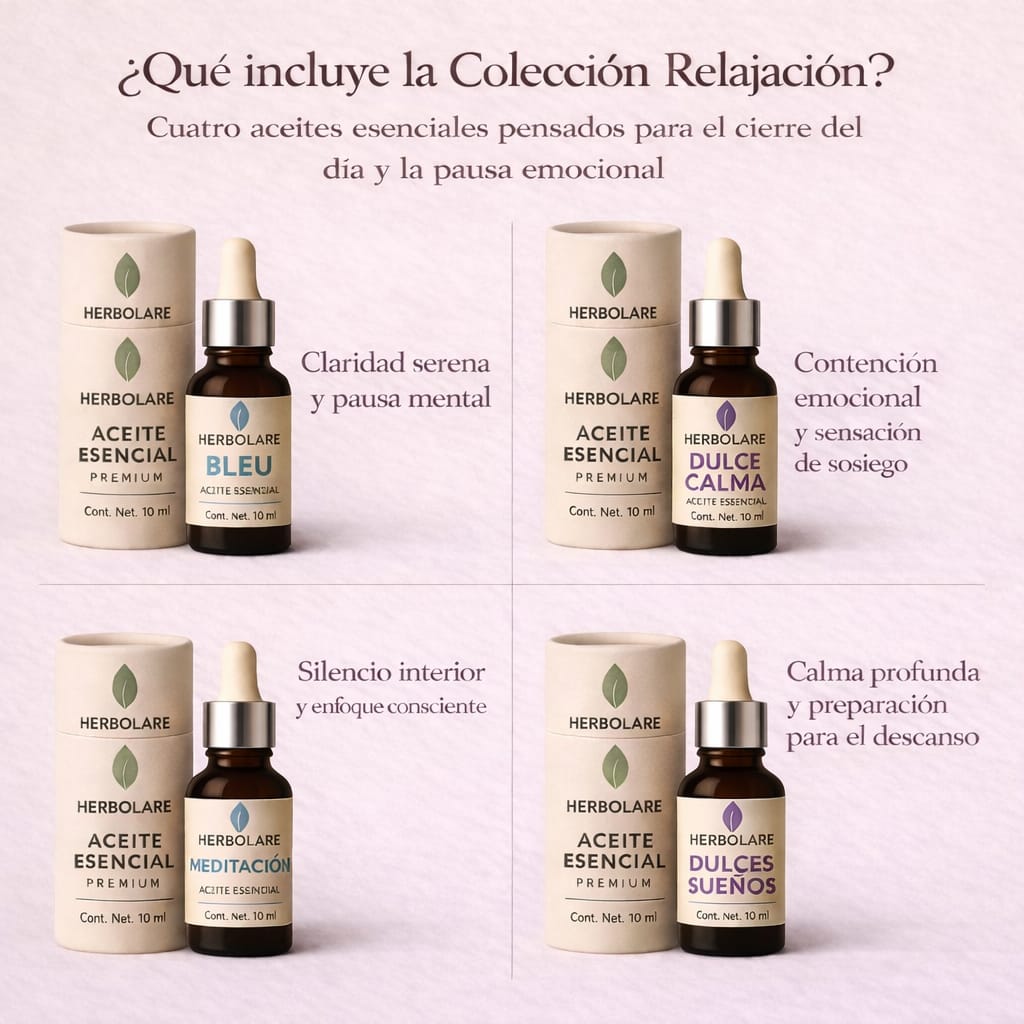 Herbolare Colección Relajación – Aromaterapia para Calma Profunda y Descanso Consciente | Dulces Sueños, Meditación, Dulce Calma y Bleu | 10 ml